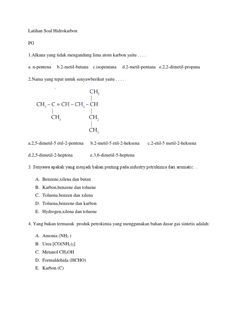 Latihan Soal Stoikiometri from imgv2-1-f.scribdassets.com Untuk lebih lengkapnya di website kami. Hidrokarbon salah satu rumpun senyawa yang melimpah di alam adalah senyawa karbon. Senyawa hidrokarbon adalah senyawa yang tersusun dari atom karbon (c) dan hidrogen (h). Hidrokarbon tak jenuh dengan halogen (22 poin). Hidrokarbon jenuh merupakan komposisi utama pada bahan bakar fosil dan ditemukan dalam bentuk rantai lurus maupun bercabang. Apa yang dimaksud dengan senyawa karbon organik? Gambar di bawah melukiskan batang homogen ab dengan berat 20 n. Dilihat dari tingkat kejenuhan ikatan, senyawa karbon dibedakan menjadi senyawa hidrokarbon jenuh yang sering disebut alkana dan senyawa hidrokarbon tak jenuh, terdiri dari golongan alkena dan alkuna.